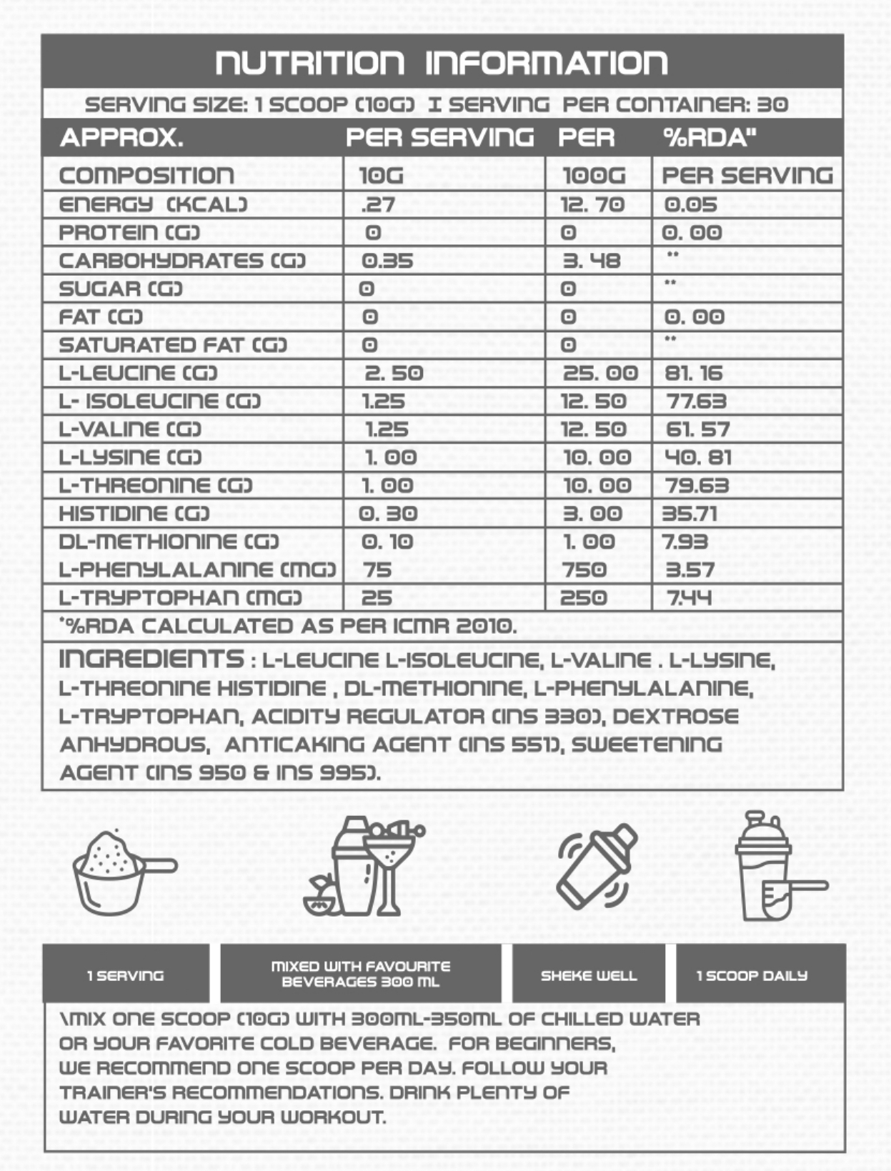 Mix One Scoop (10g) With 300ml-350ml Of Chilled Water Or Your Favorite Cold Beverage. For Beginners, We Recommend One Scoop Per Day. Follow Your Trainer’s Recommendations. Drink Plenty Of Water During Your Workout.